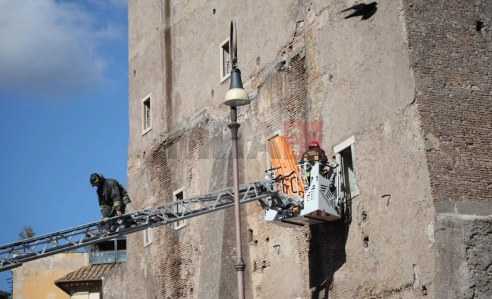 Дел од средновековната кула „Торе деи Конти“, која се наоѓа во центарот на Рим во близина на Колосеумот и Римскиот форум, се урна утрово, при што еден работник остана заробен, а друг е сериозно повреден.