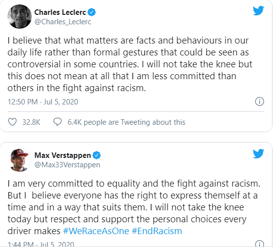 Шестмина возачи на Ф1 одбија да клекнат како гест на поддршка на движењето против расизмот