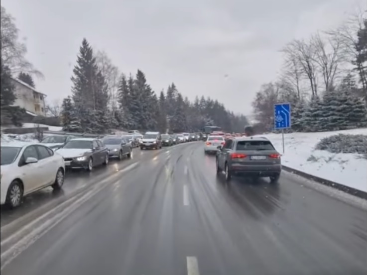 Поради зимските услови, сообраќајот е забранет за камиони со приколки и полуприколки, како и за возила без зимска опрема, на патиштата во Лика и Горски Котар.