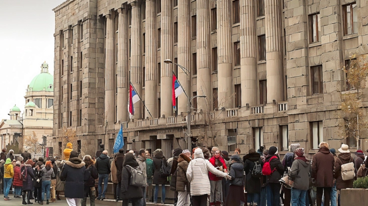 Судии, обвинители и адвокати од цела Србија денеска протестираа пред Уставниот суд и Правниот факултет во Белград, поради, како што тврдат, политички притисоци врз судството.