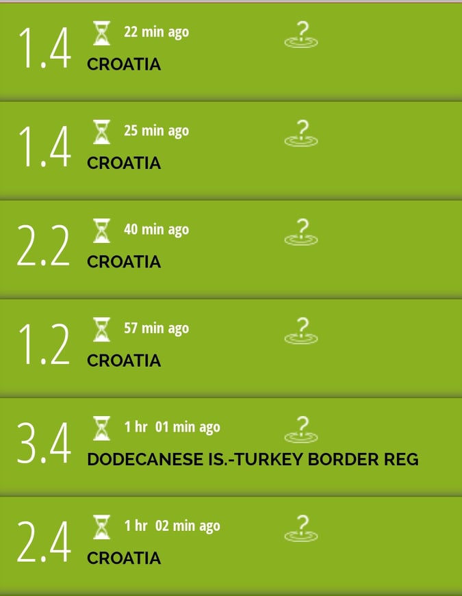 Пет нови потреси со јачина од 2,4 до 1,2 степени според европската макросеизмичка скала се регистрирани на подрачјето на Петриња и Сисак во изминатиов еден час, објави Европскиот макросеизмички центар со седиште во Франција.