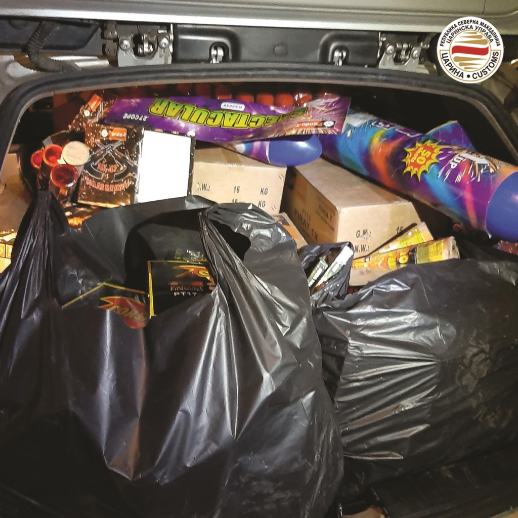 „При претресот, царинските инспектори од мобилниот тим, забележале дека задните седишта се спуштени, при што целиот тој простор и багажникот од автомобилот биле исполнети со пиротехнички средства“,
