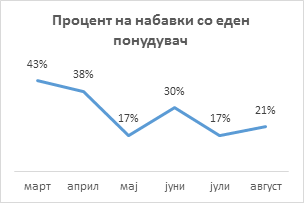 На 30 % од итните набавки се преговарало само со една фирма. Анализата на склучените договори укажува на случаи во кои цената на набавените производи била пониска кога во преговорите биле вклучени повеќе од една понуда. Во 10 % од известувањата за склучен договор, договорните органи го промениле првобитно објавениот број на понудувачи од 1 во 2 и повеќе, при промената на известувањата што од нив ја побара Владата, за да додадат дека станува збор за набавки поврзани со ковид-19.