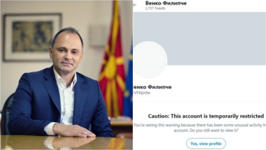Твитер профилот на Филипче е блокиран поради внесен погрешен код за верификација