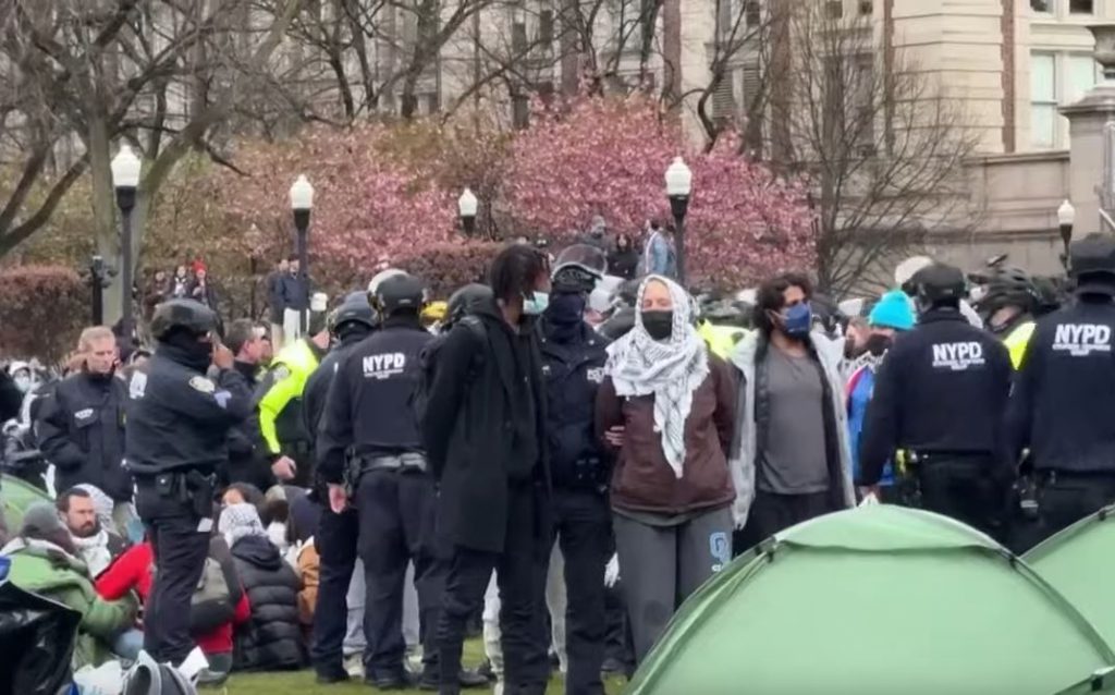 Претседателката на Универзитетот „Колумбија“, Немат Минуче Шафик, во четвртокот минатата недела ја повика полицијата да го расчисти кампот што го поставија демонстрантите на главниот тревник во кампусот од каде што бараа Универзитетот да ги прекине врските со компании поврзани со Израел. Повеќе од 100 студенти беа уапсени минатиот четврток под обвинение за престап, а Универзитетот и соседниот Колеџ „Барнард“ суспендираа десетици студенти вклучени во протестите на кампусот, во обид за смирување на ситуацијата и спречување таа да ескалира.