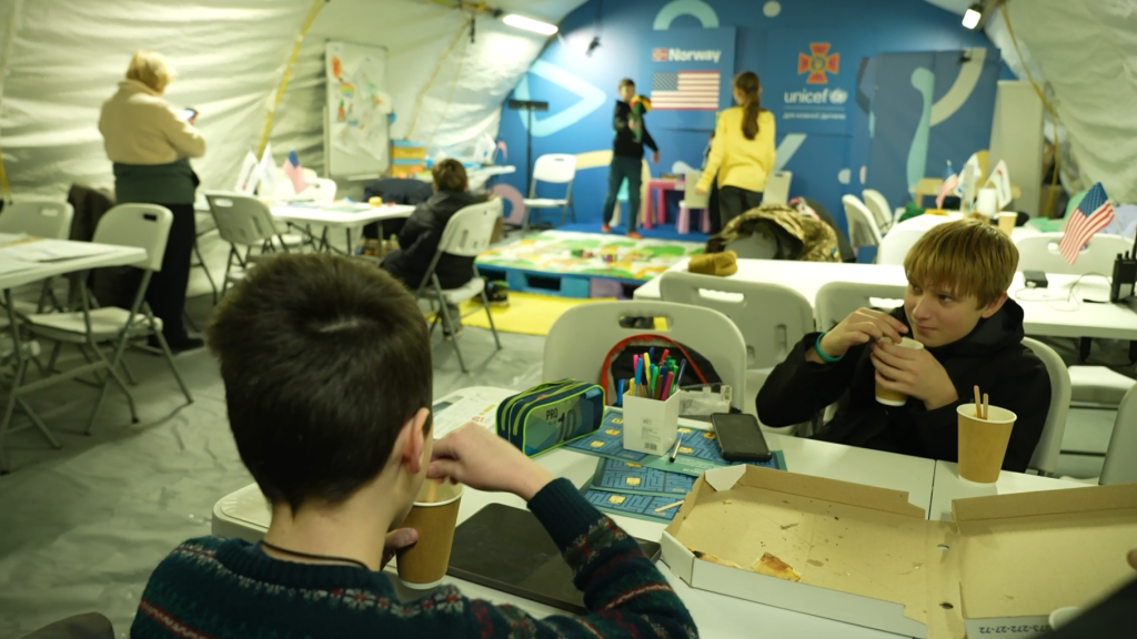 Има и многу деца. Во едниот шатор е направен импровизиран центар за вонучилишни активности – место за дружење, играње и учење. Тука сретнавме жена која ни раскажа дека речиси два месеца во нејзиниот стан немало греење.