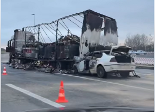 (ВИДЕО) Автомобил и камион целосно изгореа во сообраќајката кај клучката „Хиподром“ – едно лице е потешко повредено