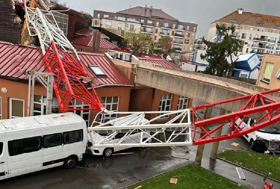 Силните ветрови собориле дрвја, корнеле покриви од куќи и превртувале автомобили, а три градежни крана паднале врз медицинско-образовниот институт во Ермон