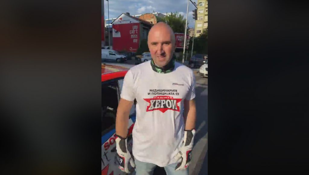 Македонскиот професионален рели возач, Игор Стефановски – Иџе во текот на полицискиот час возеше во чест на, како што вели, нашите херои во овој период: здравствените работници, полицијата, армијата …