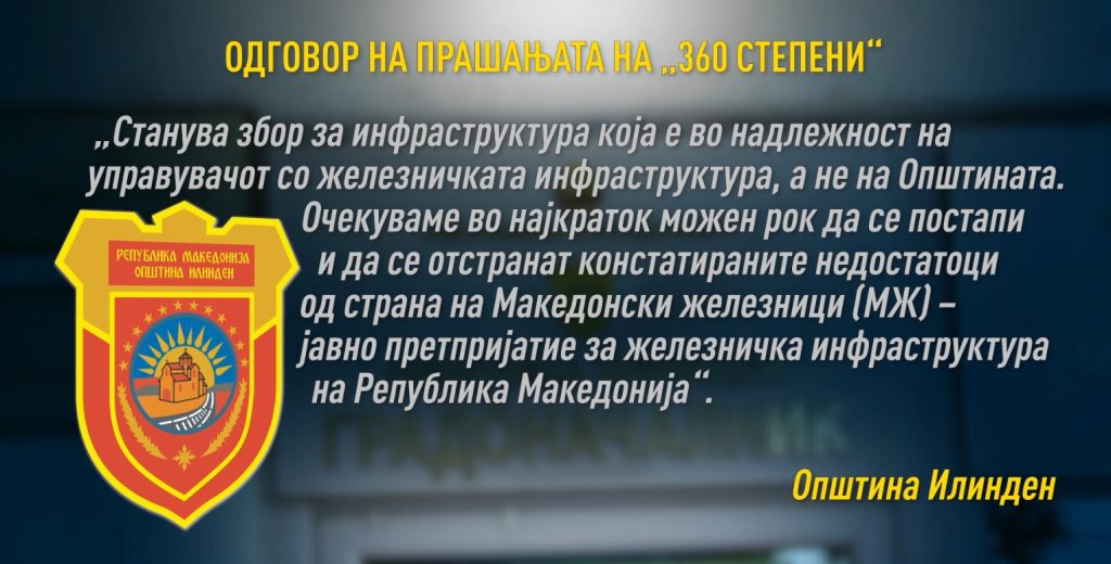 Во има на управителот на инфраструктурата, „Македонски железници – Транспорт“, пред камерата на „360 степени“ зборуваше Тони Ѓуревски, помошник-директор за електротехнички постројки.