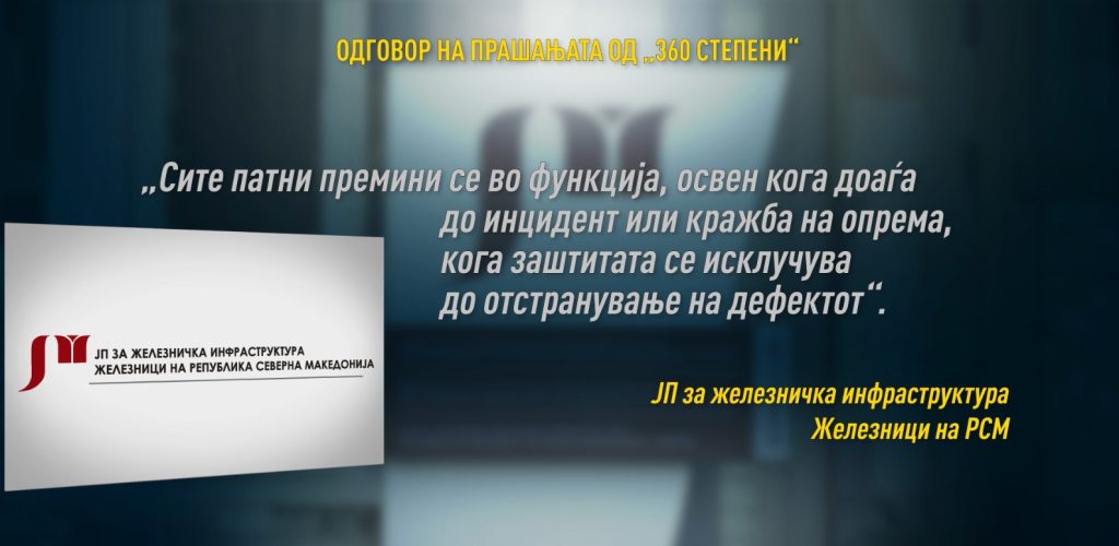 Тогаш, од ЈП „Железници – Инфраструктура“ ни одговорија: „Сите патни премини се во функција, освен кога доаѓа до инцидент или кражба на опрема, кога заштитата се исклучува до отстранување на дефектот“.