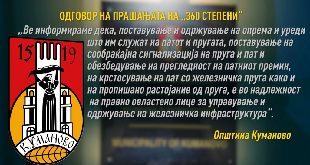 Поради законската обврска за покривање на дел од трошоците на одржувањето, се обративме до сите локални самоуправи на чија територија се наоѓаат железничките премини што ги посетивме – Град Скопје, Илинден, Куманово, Зелениково. Прашања упативме и до Јавното претпријатие „Македонија пат“, кое е надлежно за одржување на регионалните патишта. Од Куманово, на чија територија се дефектните премини во Агино Село,