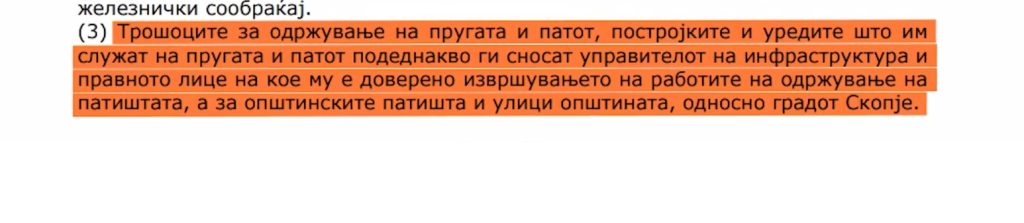 Побаравме став од надлежните институции за одржување и финансирање на патните премини. Според членот 53 од Законот за железничкиот систем, одржувањето на патните премини, до три метри од железничката пруга, се надлежност на управителот на инфраструктурата, во случајот „Македонски железници – Транспорт“.