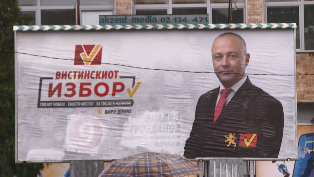 Партијата од чии редови доаѓа градоначалникот, ВМРО-ДПМНЕ, водеше кампања за локалните избори во Кочани без „помпа“, за разлика од другите општини. Премиерот и претседател на владејачката партија, Христијан Мицкоски, во предизборието се појави еднаш во Кочани, на трибина за која немаше ниту најава за медиумите, ниту пренос. Сепак, даде крупно ветување.
