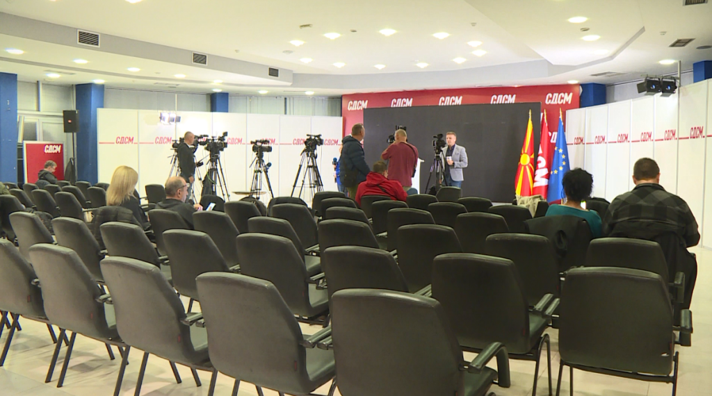 А, во таборот на СДСМ, тивко и празно, како ретко кога претходно. Внатре полно со камери, а присутните беа главно медиумски работници. Малкумина активисти и кандидати за советници во Град Скопје ја проследија првата прес-конференција, на која не се појави никој друг од раководството покрај генералниот секретар.