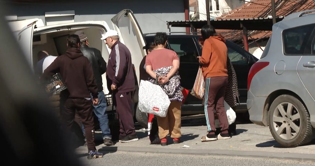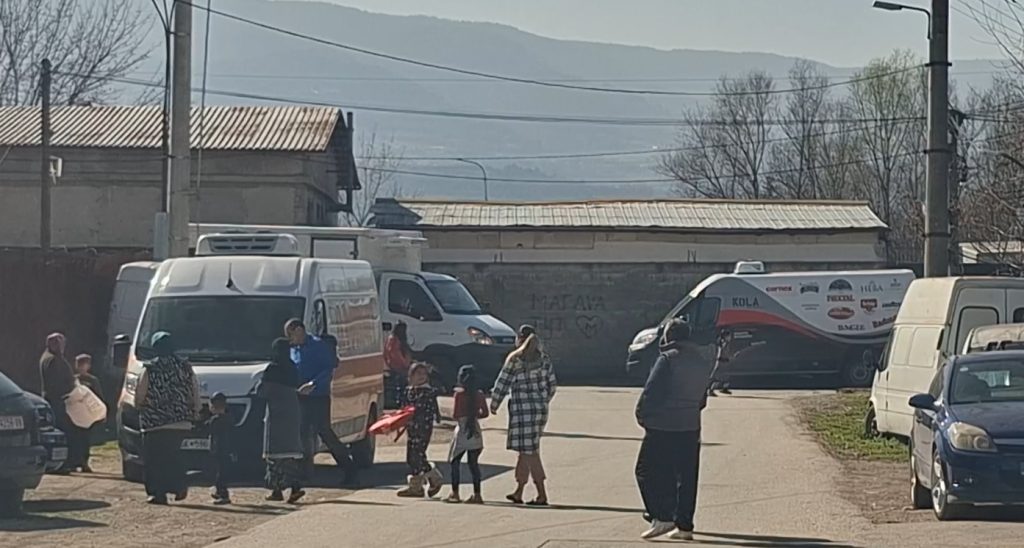 Овие снимки се направени на 10 март 2026 година. Снимаме во населбата Драчево, зад објектот на месната заедница. Околу 9 часот доаѓа бело комбе, од кое почнува да се дели храна на насобраните граѓани.