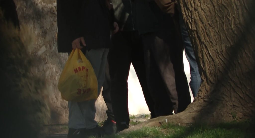 Од Бутел, продолживме и во Општина Центар, близу амбасадата на САД. Тоа е една од деветте локации каде граѓани во социјален ризик на улица чекаат храна од комбе, иако според јавниот повик би требало да користат јавни кујни.