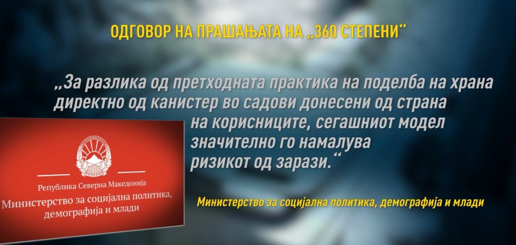 Од Министерството за социјална политика, демографија и млади ни одговорија дека имаат дневни извештаи за бројот на поделени оброци и дека ротациите во оброците се координирани со нив.