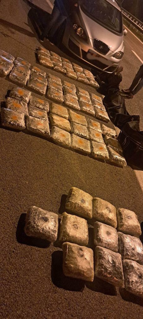 Возачот наместо да застане на даден знак, со голема брзина се дал во бегство, но полицијата за кратко време го фатила и при преглед во возило пронашла четири црни торби со вкупно 65 килограми марихуана и два телефонски апарата, велат од МВР