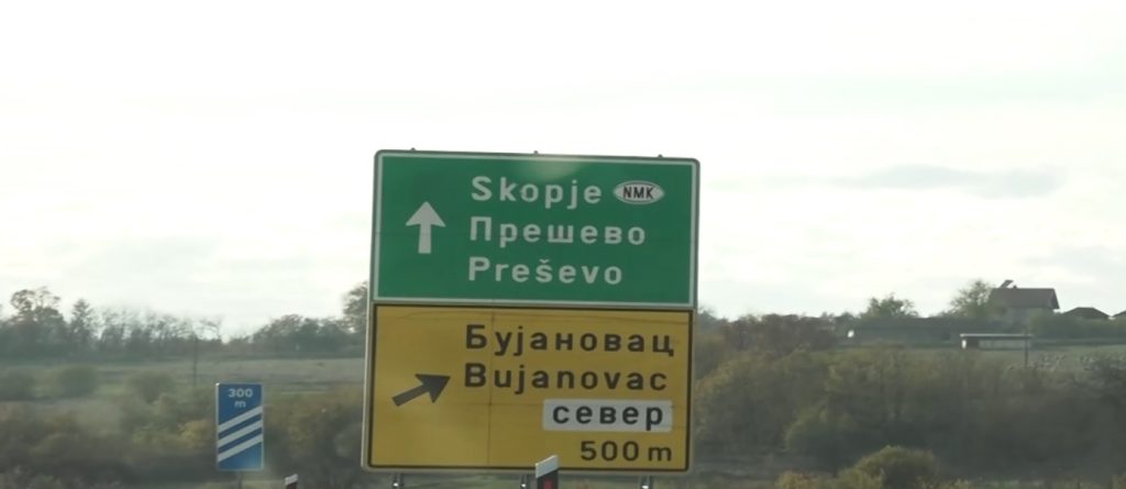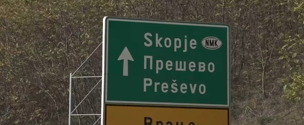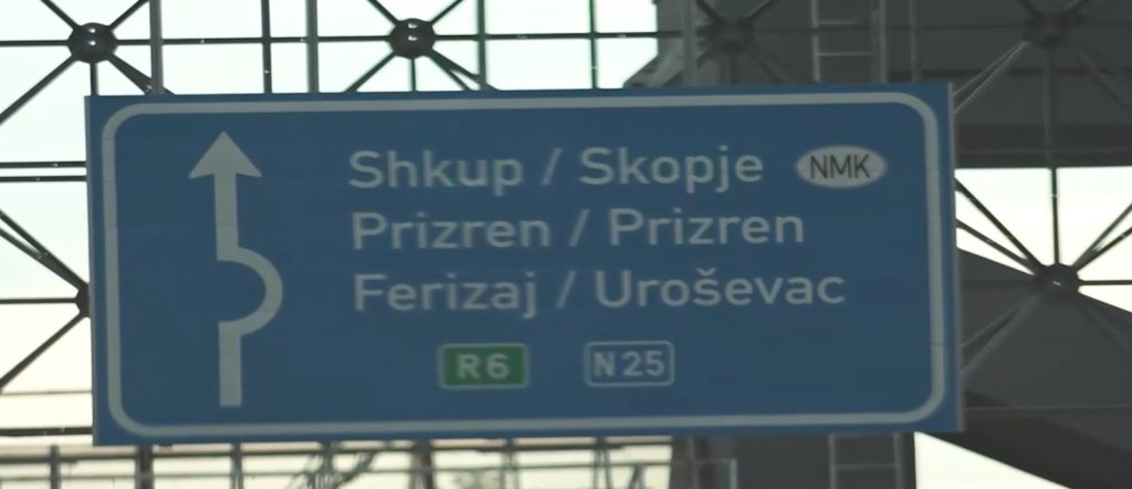 На излезот од главниот град на северниот сосед, по стариот пат кон Скопје, избројавме три табли на кои е употребена ознаката НМК, а не меѓународниот код – МК или МКД. Уште дента кога ги снимавме знаците се обидовме да добиеме информација од косовската централна и локална власт во Приштина – кој и зошто ги поставил тие знаци. Тој ден, не добивме одговори.
