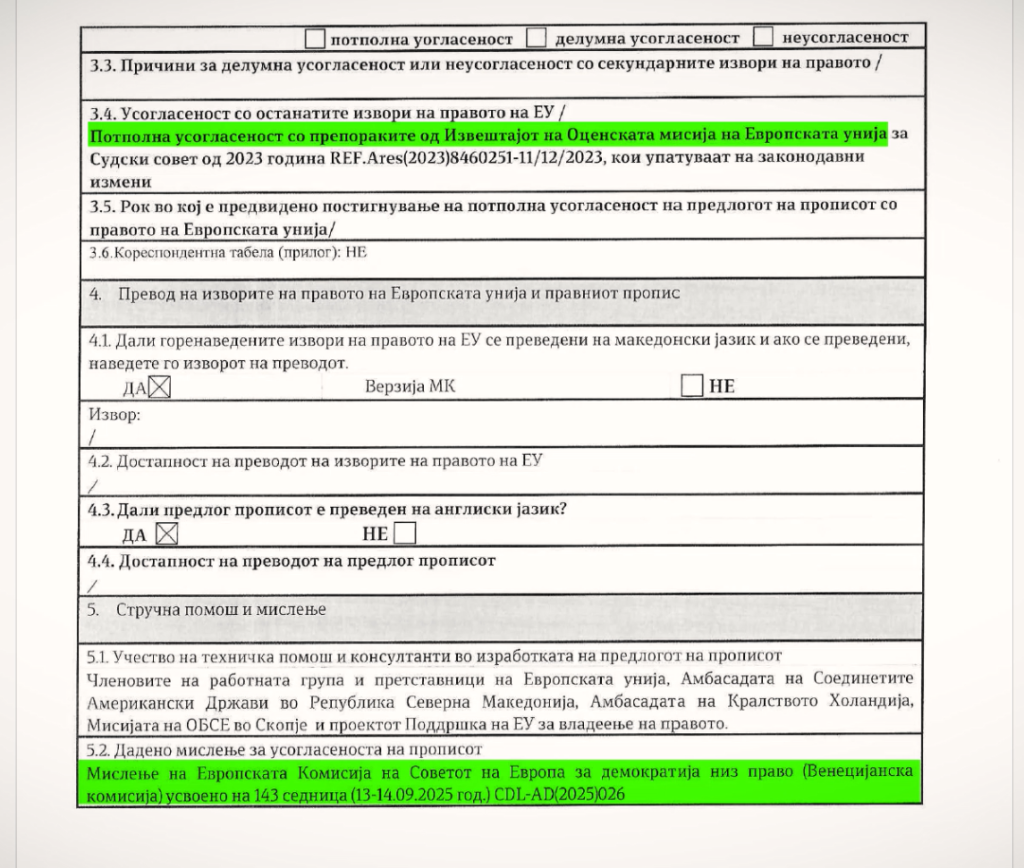 Поставивме и други прашања. Еве го одговорот на најважното – зошто пред пратениците се наоѓа текст чии одредби се разликуваат од оние кои беа испратени на мислење до Венецијанската комисија?