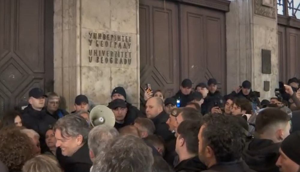 Како што пренесуваат српските медиуми, демонстрантите сè уште се пред зградата на Ректоратот, а дел од полицијата се повлекла по околните улици.