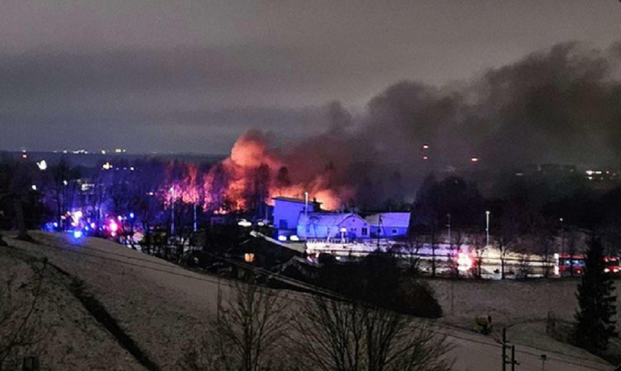 Пожарникарите гаснеле пожар што се издигал над зградата на околу 1,3 километар северно од пистата на аеродромот во Вилнус