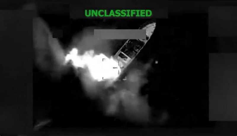 Јужната команда на војската на САД на социјалната платформа Икс објави и видео од моментот кога бродот е погоден од проектил истрелан од американските сили, а во објавата се додава и дека едно лице го преживеало нападот.