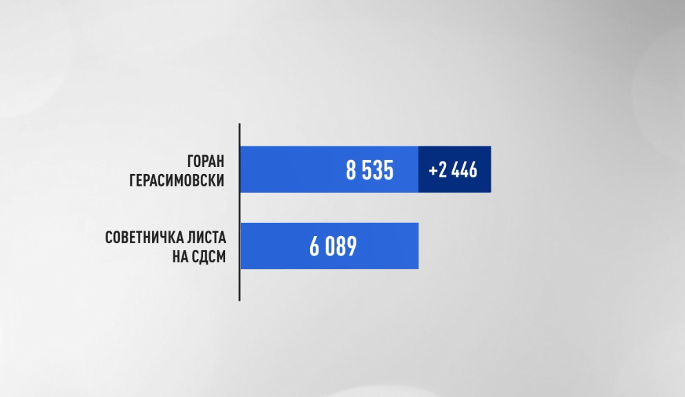 Иако базенот на гласови е ист, гласањето за советници е порасцепкано оти имаше 9 листи. Во тие бројки интересно е што, на пример, кандидатот на СДСМ, Герасимовски, со 8 535 гласа, е над советничката листа на матичната партија која за советот освои 6 089 гласа. Ова значи дека кандидатот на СДСМ добил околу 2 500 гласа плус од партијата што го кандидира.