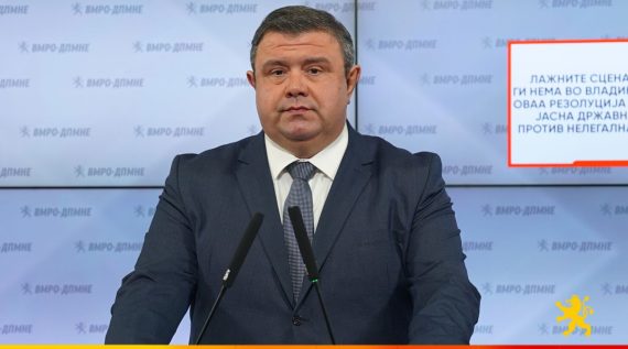 Резолуцијата, која е составена од 9 точки, Мицевски вели дека воспоставува јасна државна политика против нелегалната миграција … Продолжи со читање ВМРО-ДПМНЕ ги осудува „лажните сценарија“ на СДСМ и предлага резолуција против нелегалната миграција