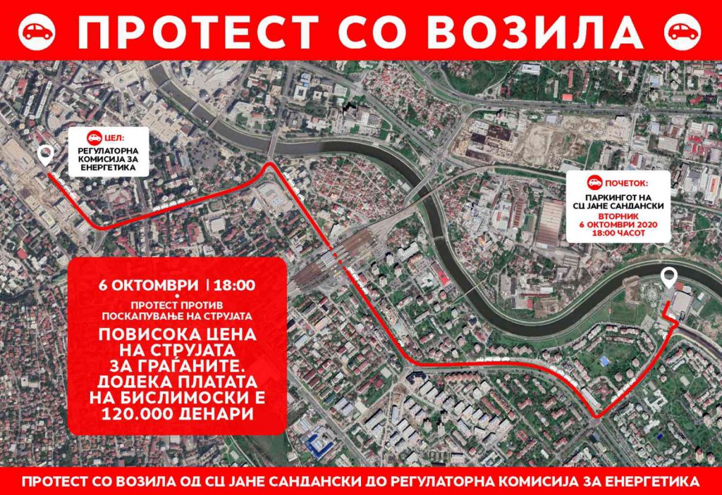 Со возила, опозициската ВМРО-ДПМНЕ ќе го почне протестот од пред Спортскиот центар „Јане Сандански“ во Аеродром, а ќе го заврши пред просториите на РКЕ.