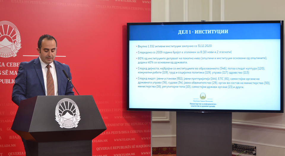 „Намалување на бројот на вработени има во органите на државната власт. Во 2019 година во органите на државната власт биле вработени 16 522 лица, а во 2020 година овој број е 15 945, што е намалување за 577 вработувања или 3 проценти. Но, ако како држава во 2020 година бележиме намалување на бројот на вработени во државниот апарат, тоа не е случај со вработеноста во институциите во некои од клучните сектори како здравството и во детската и социјалната заштита. Во овие сектори извештајот покажува зголемување на бројот на вработени. Тоа илустрира дека нови вработувања се прават онаму каде што за тоа има вистинска потреба“,