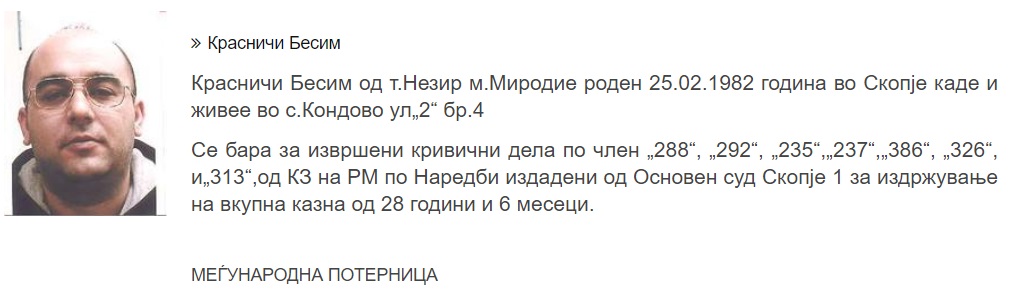 Во Косово уапсени Бесим Красниќи и Фадим Точи, барани со потерница од МВР