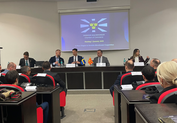 Македонскиот заменик-министер за надворешни работи Зоран Димитровски, пак, рече оти со отворањето на Шведско-македонската комора, се додава нова, динамична платформа која ќе создаде нови можности за бизнисите, воедно велејќи дека тоа претставува наш заеднички пат за подобрување на дијалогот и можностите за уште поблиска соработка со Шведска.