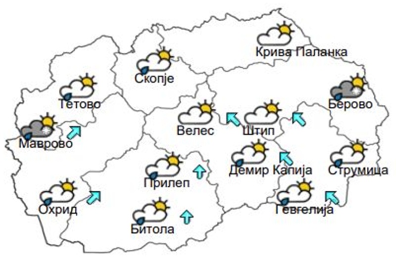 „Во петок и недела ќе преовладува претежно облачно време со услови за слаби локални врнежи од дожд и снег, а во сабота и понеделник ќе биде променливо облачно“,
