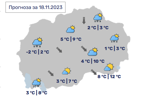 Времето денеска: Променливо облачно и студено со засилен ветер