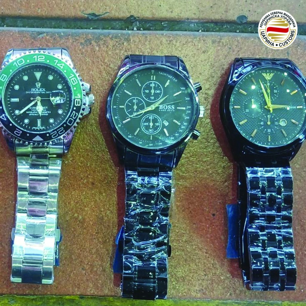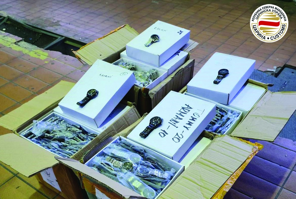 Над илјада парчиња часовници со потписи на трговските марки „Ролекс“, „Бос“, „Армани“ и „Томи Хилфигер“ се запленети при контрола на стока пријавена за транзит на граничниот премин „Богородица“ на македонско-грчката граница.