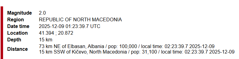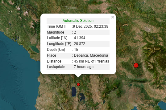 Земјотресот го регистрирал и Институтот за геолошки науки во Тирана, според чии информации, епицентарот е во Општина Дебрца.