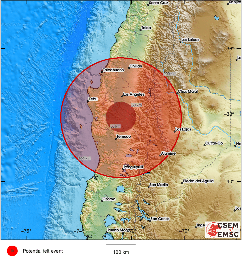 Националниот систем за спречување и одговор при катастрофи на Чиле соопшти дека нема извештаи за предизвикана штета или за жртви
