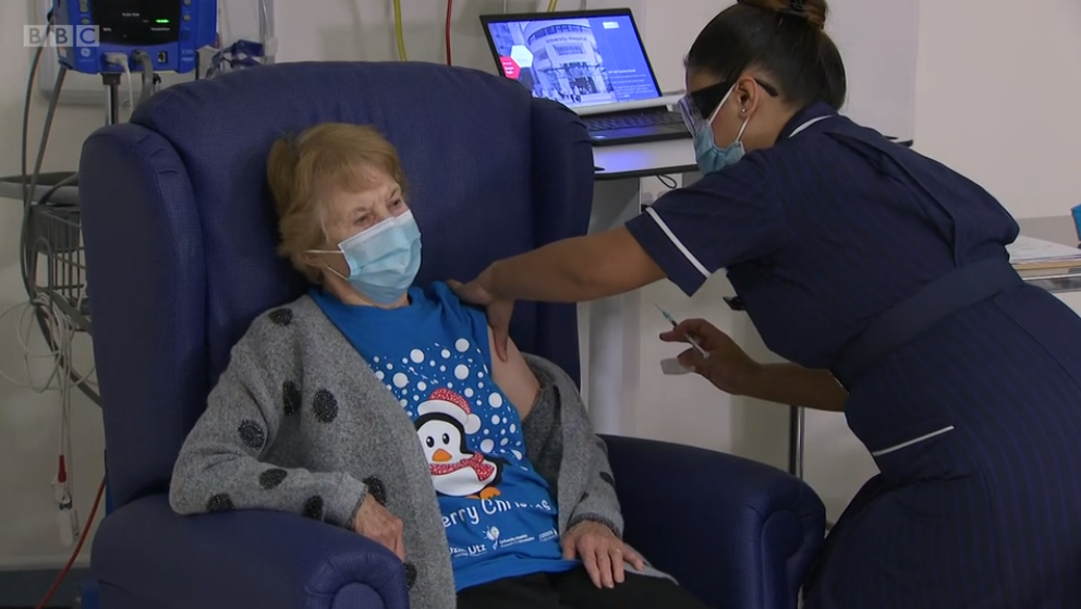 Маргарет Кинан од Енискилен, Северна Ирска, жена на 90-годишна возраст, стана првата личност која ја прими вакцината против ковид-19 во Велика Британија, откако британските власти ја одобрија вакцината на „Фајзер“ и „Бионтек“ и ја почнаа програмата за масовна имунизација.